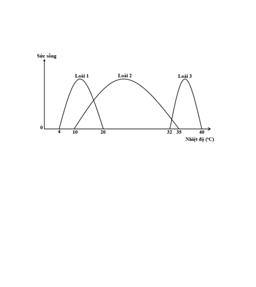 Hình 1. Sơ đồ giới hạn sinh thái về nhiệt của 3 loài sinh vật.
