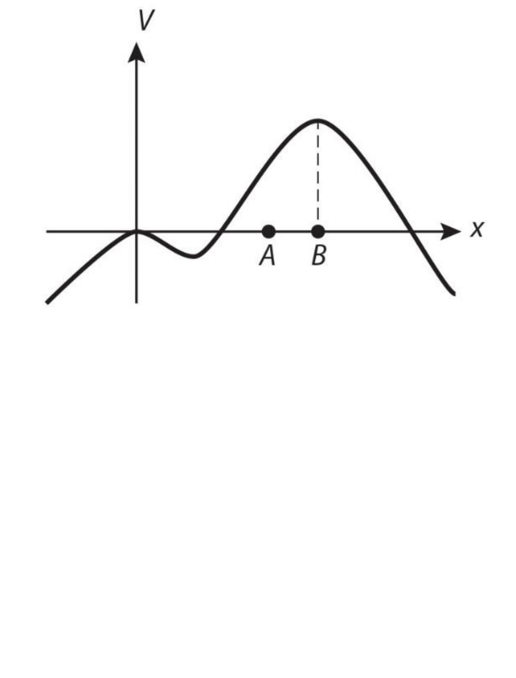 Hình bên là đồ thị biểu diễn điện thế theo vị trí. Nếu một hạt mang điện âm được đặt tại điểm B và