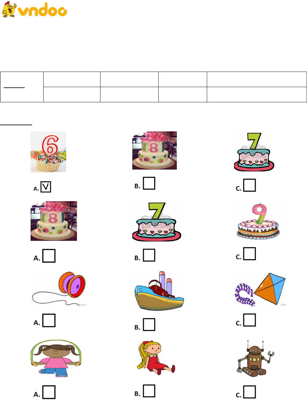 Nhằm giúp các em học sinh có kì thi học kì 2 diễn ra hiệu quả nhất, ngoài học liệu về môn tiếng Anh lớp 3, VnDoc.com còn sưu tầm và đăng tải các học liệu môn Toán, Tiếng Việt...Các em hãy vào tham khảo và rèn luyện nhiều lần để có kiến thức trọn vẹn, đồng đều các môn học. Chúc các em học tốt!