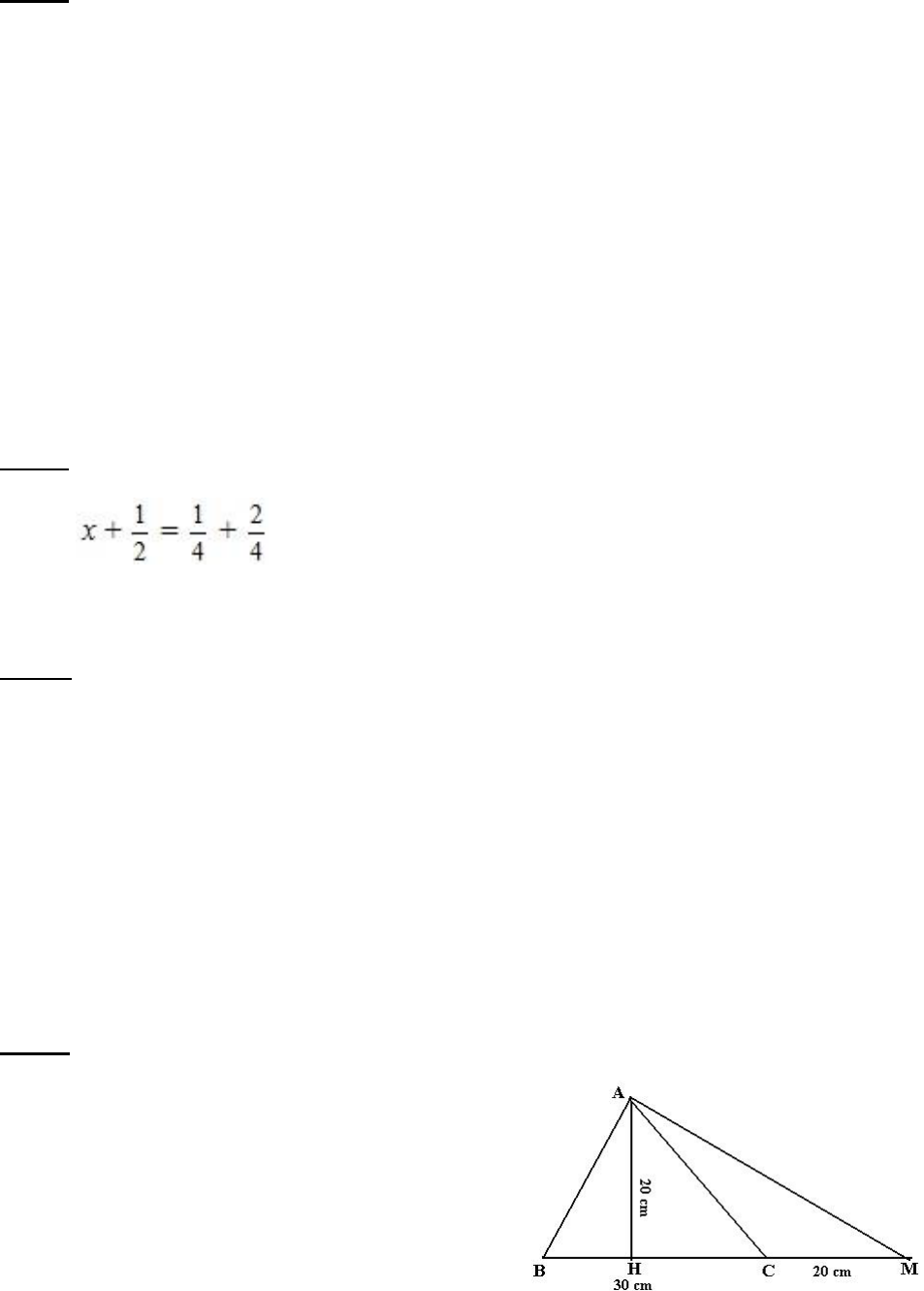 Câu 4: Cho tam giác ABC có cạnh đáy BC dài 30 cm. Chiều cao AH bằng 2/3