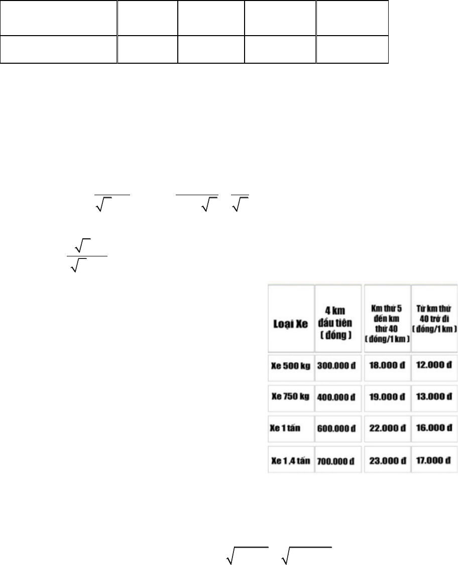 vận tải như hình bên. Hãy tính số tiền công ty phải trả khi thuê một xe 1,4 tấn