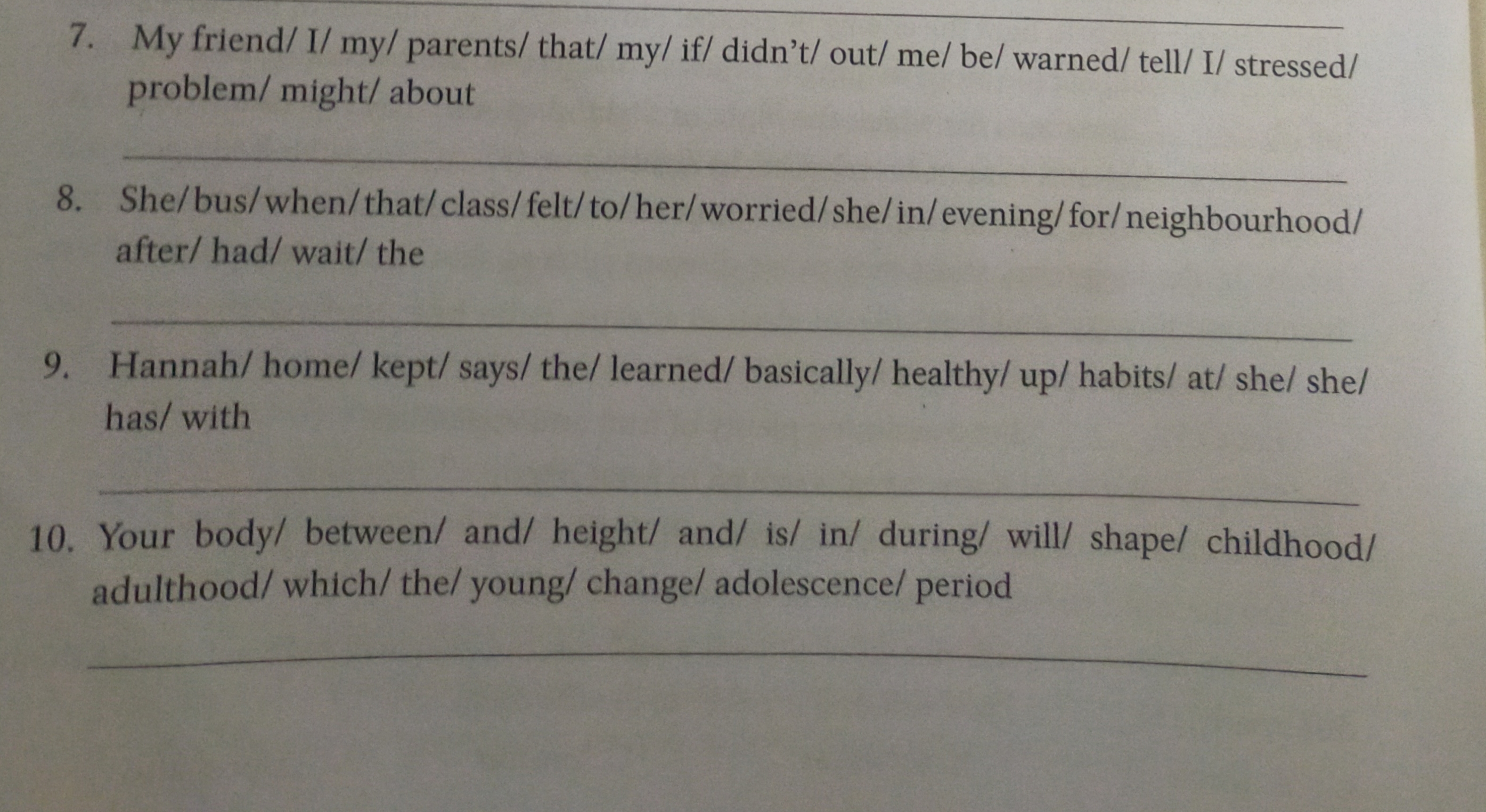 Đề: Reorder the words to make meaningful sentences