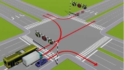 Các xe đi theo hướng mũi tên, những xe nào vi phạm quy tắc giao thông?