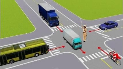 Theo hướng mũi tên, thứ tự các xe đi như thế nào là đúng quy tắc giao thông?