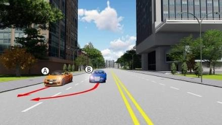 Trong tình huống dưới đây, xe con màu vàng vượt xe con màu đỏ là đúng quy tắc giao thông hay không?