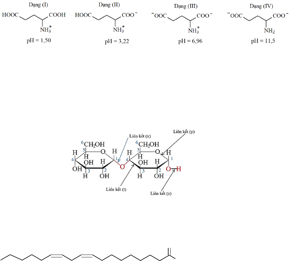 Câu 15. Glutamic acid có các dạng tồn tại và giá trị pH mà dạng tồn tại đó là chủ yếu (≈ 100%) như