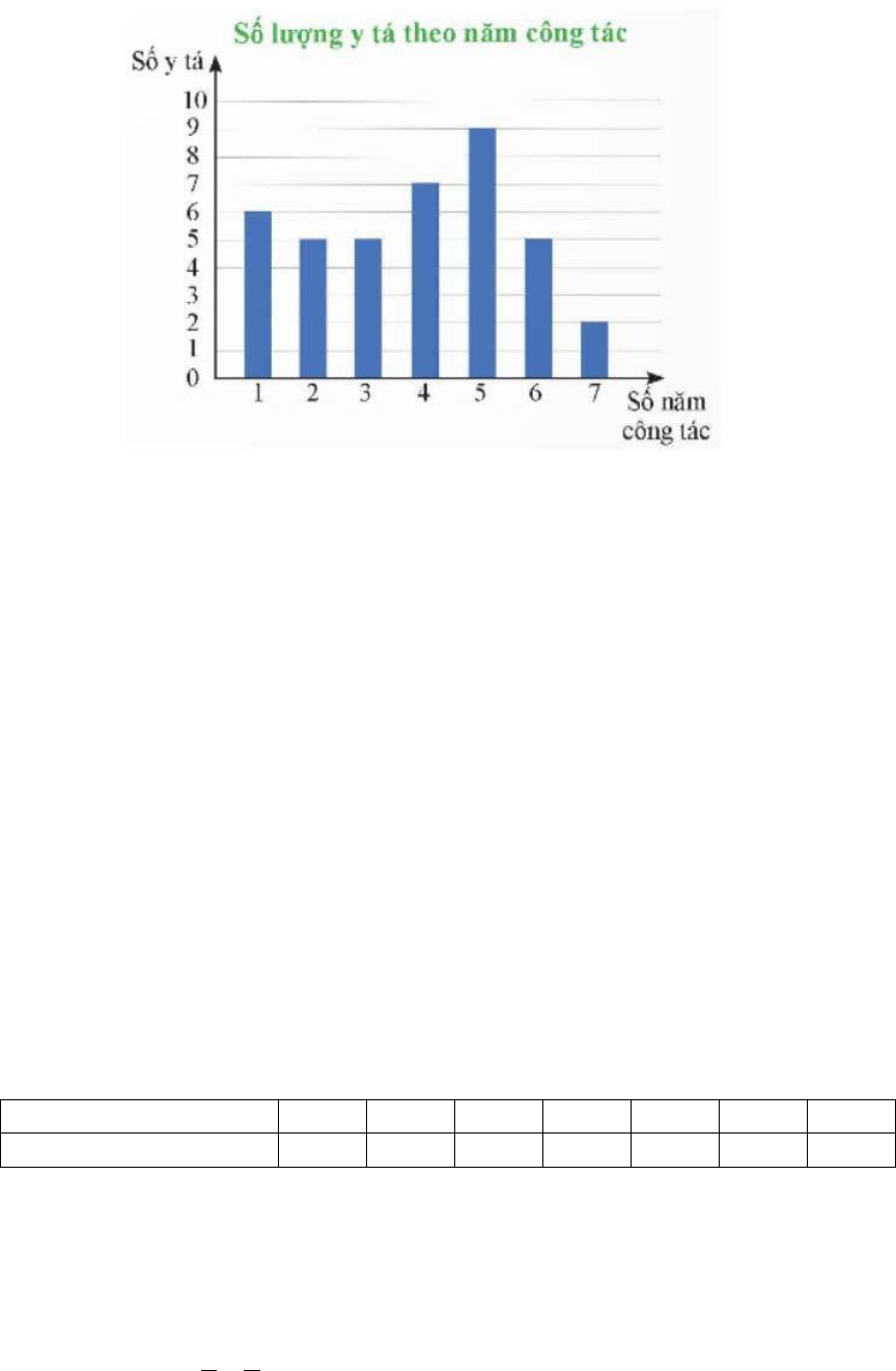 1) Biểu đồ bên dưới thống kê thời gian công tác (theo năm) của các y tá ở một phòng khám tư