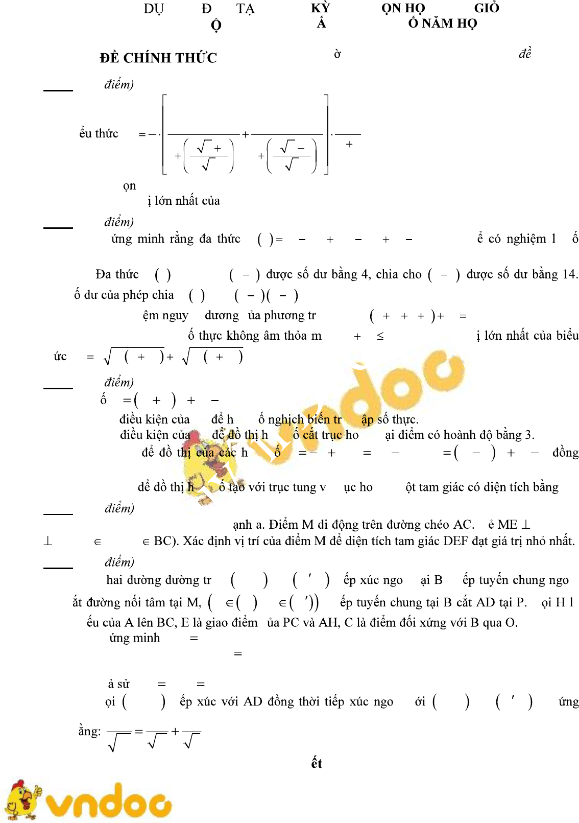 - Đề thi học sinh giỏi cấp tỉnh lớp 9 môn Toán Phòng GD&ĐT Diễn Châu năm học 2019 - 2020