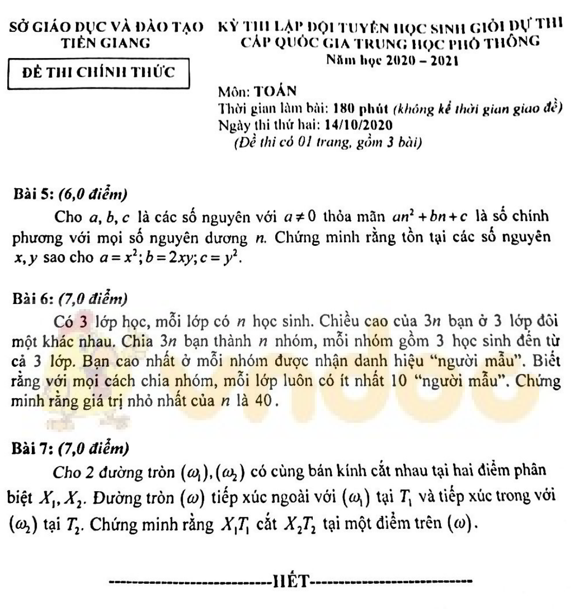 Đề thi chọn học sinh giỏi lớp 12 môn Toán năm 2020-2021 Sở GD&ĐT Tiền Giang vừa được VnDoc.com sưu tập và xin gửi tới bạn đọc. Mong rằng qua bài viết bạn đọc có thêm nhiều tài liệu để học tập và ôn tập cho kì thi chọn học sinh giỏi sắp tới nhé. Mời các bạn cùng tham khảo chi tiết và tải về tại đây nhé.