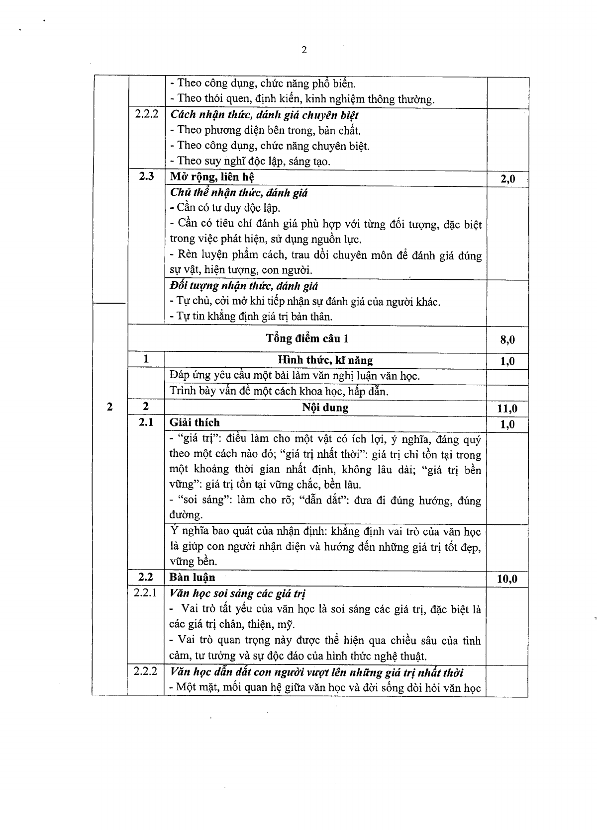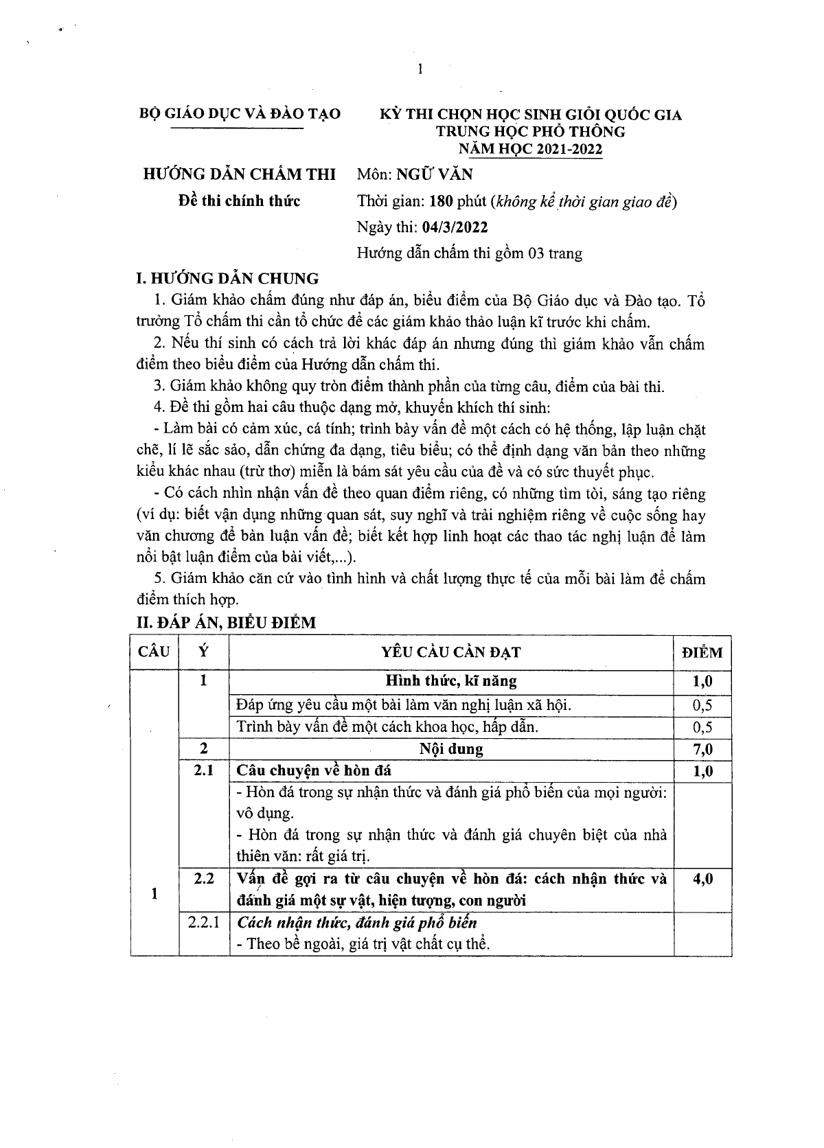 Đáp án đề thi chọn học sinh giỏi Quốc gia THPT môn Ngữ văn năm 2022 Bộ GD&ĐT