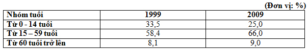 Nhận xét và giải thích sự thay đổi cơ cấu dân số nước ta phân theo nhóm tuổi qua hai năm 1999 và 2009.