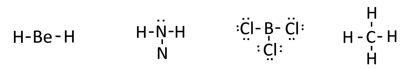 Các phân tử BCl3 (có 6 electron ở lớp ngoài cùng) và BeH2 (có 4 electron ở lớp ngoài cùng) có nguyên tử trung tâm không thỏa mãn quy tắc octet.