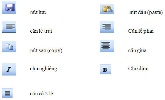 Câu 6: Em hãy ghi công dụng của các nút lệnh sau đây (1,5 đ)