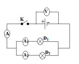 a) Am pe kế A đo cường độ dòng điện qua toàn mạch nên ta có: I = 0,6A; Am pe kế A1 đo cường độ dòng điện qua đèn Đ1 nên ta có: I1 = 0,2A