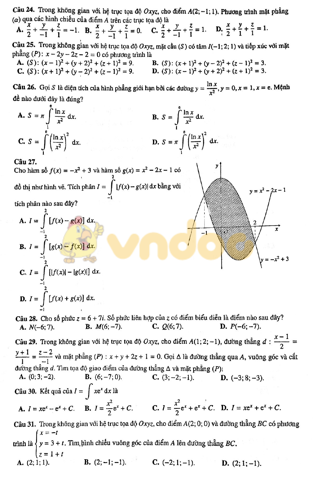 Đề thi học kì 2 lớp 12 môn Toán năm 2020 - 2021 có đáp án