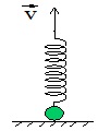 Một quả nặng nhỏ khối lượng m, nằm trên mặt sàn nằm ngang, được gắn với một lò xo nhẹ có độ cứng k. Đầu tự do của lò xo bắt đầu được nâng lên thẳng đứng với vận tốc v không đổi như hình vẽ. Xác định độ giãn cực đại của lò xo. Cho gia tốc trọng trường là g. Áp dụng bằng số: m = 100g, k = 100N/m, v = 10m/s, g = 10m/s2.