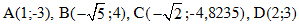 Tính gần đúng giá trị của a,b,c,d biết đồ thị của hàm số y = ax3 + bx2 + cx + d đi qua bốn điểm ![]()