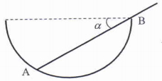 Một thanh nhẵn đồng chất, tiết diện đều, chiều dài 2L tựa trên mép một cái bát hình bán cầu đứng yên bán kính R = 10cm như hình vẽ.
