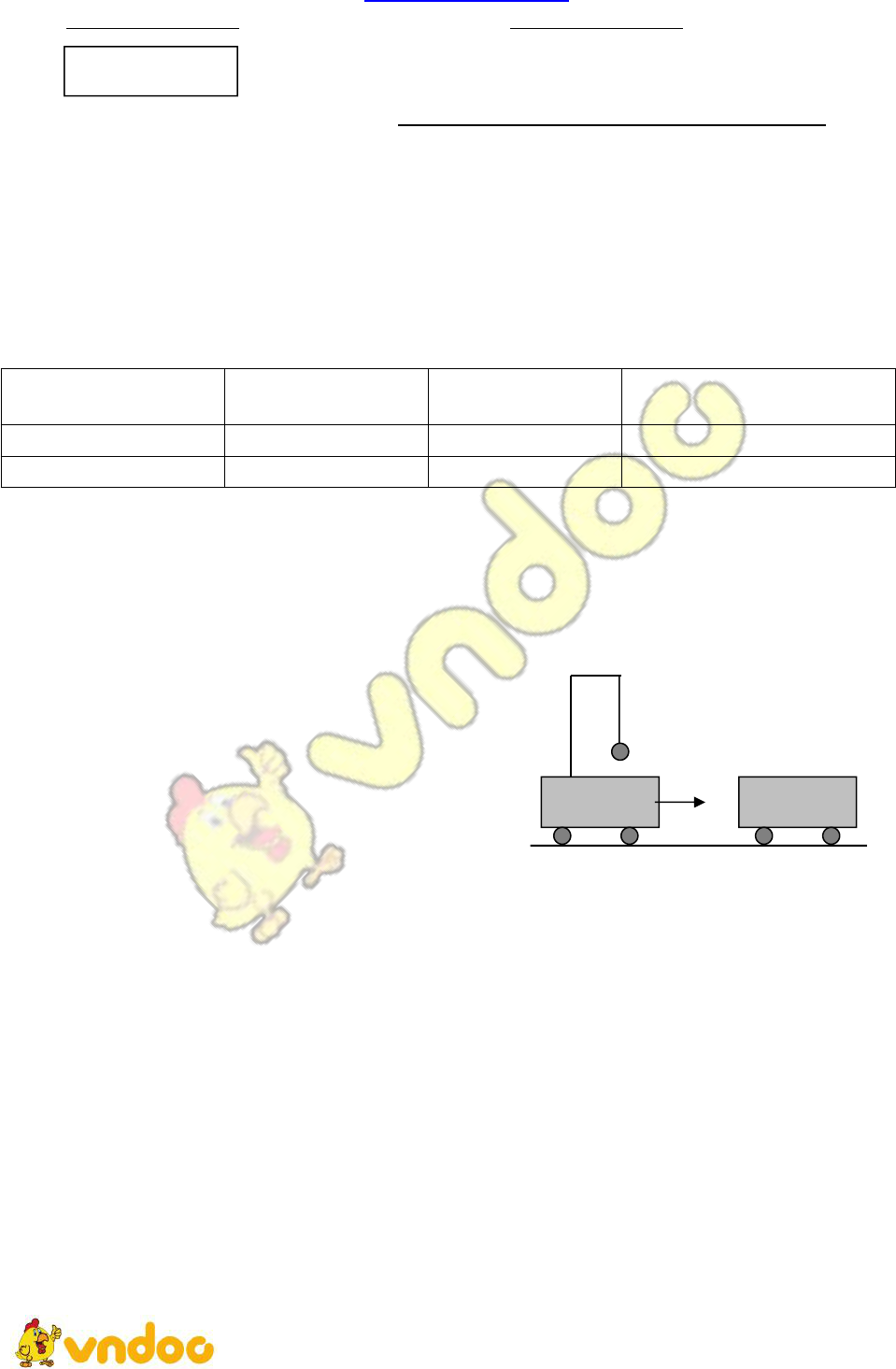 Trên mặt sàn nằm ngang có một xe lăn khối lượng m1= 4kg, trên xe có giá treo. Một sợi dây nhẹ, không dãn dài = 50 cm buộc cố định trên giá, đầu kia sợi dây treo quả bóng nhỏ khối lượng m. Xe và bóng đang chuyển động thẳng đều với vận tốc vo = 3 m/s thì va chạm mềm vào một xe khác có khối lượng m2 = 2kg đang đứng yên. Biết rằng khối lượng bóng rất nhỏ, có thể bỏ qua so với khối lượng hai xe. Bỏ qua ma sát của hai xe với sàn, lấy g = 10m/s2.