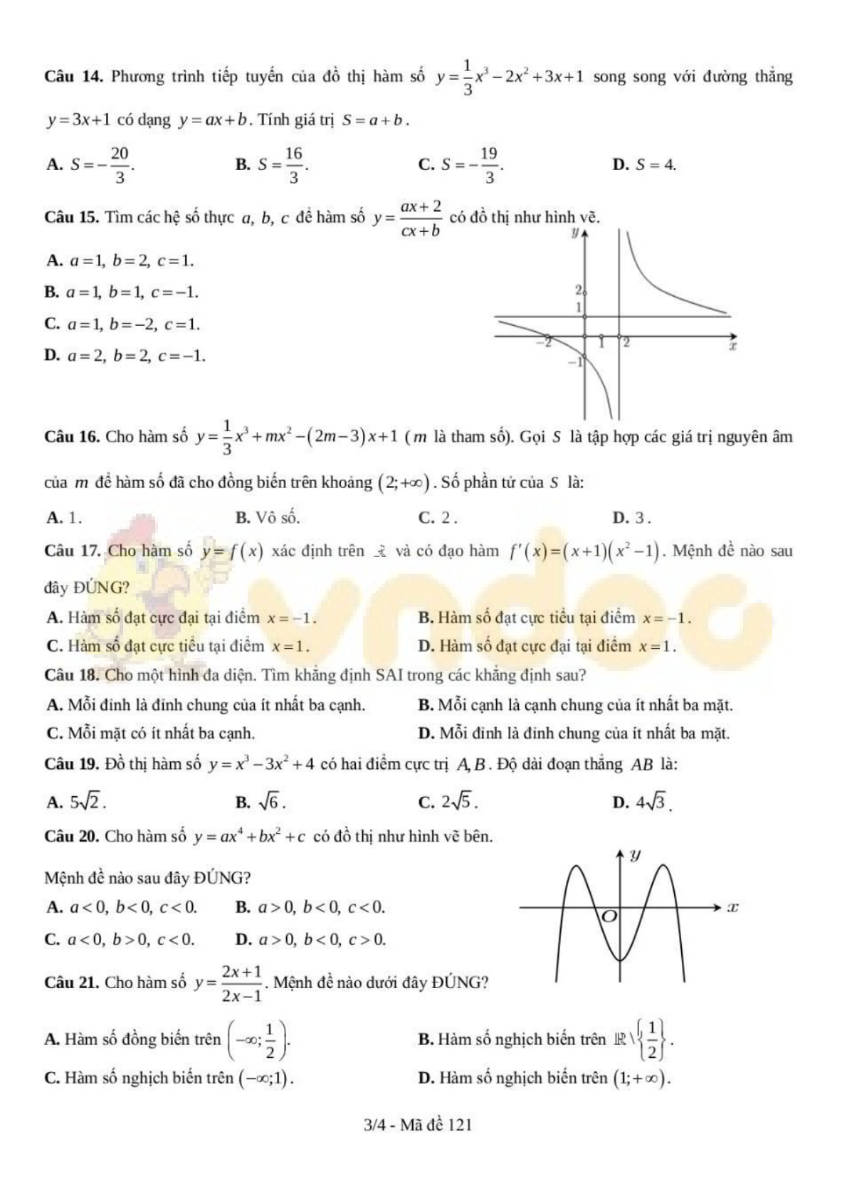 VnDoc.com xin gửi tới bạn đọc bài viết Đề thi giữa học kì 1 lớp 12 môn Toán năm 2020-2021 trường Trung học Thực hành ĐHSP, TP HCM để bạn đọc cùng tham khảo. Bài viết được tổng hợp gồm có 25 câu hỏi trắc nghiệm, thí sinh làm bài trong thời gian 45 phút. Mời các bạn cùng tham khảo chi tiết tại đây nhé.