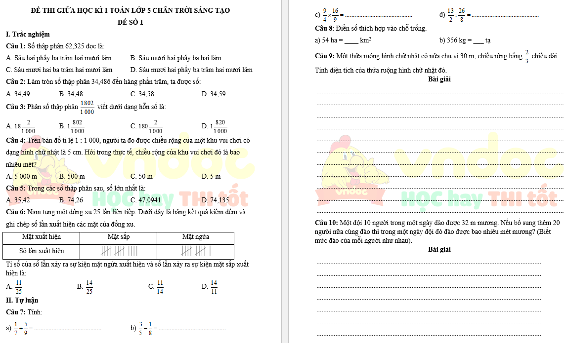 >> Tiếp theo: Đề thi giữa học kì 1 lớp 5 môn Toán Chân trời sáng tạo - Đề số 2