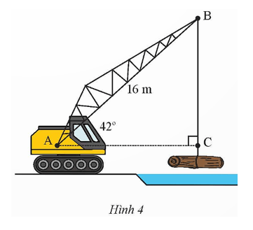 b) Một cần cẩu đang nâng một khối gỗ trên sông biết tay cẩu