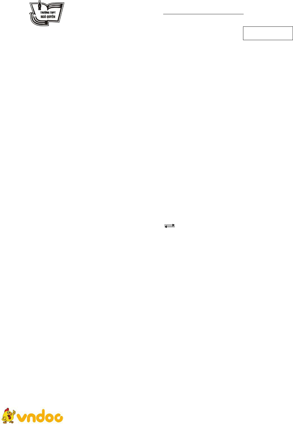 Đề thi giữa học kì 2 lớp 10 môn Hóa học năm 2018 - 2019 trường THPT Ngô Quyền - Hải Phòng