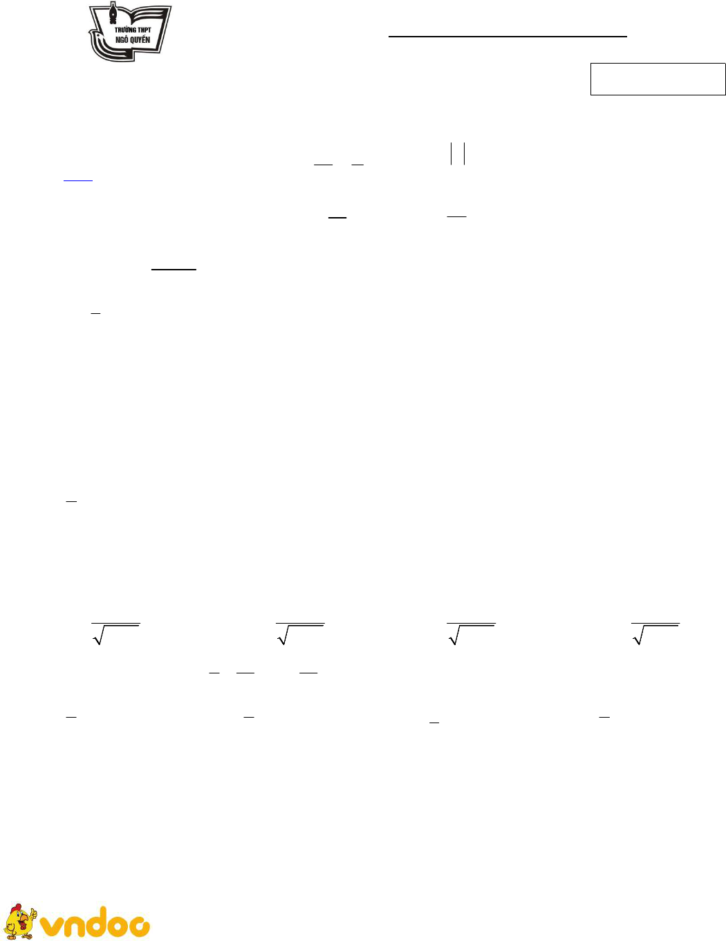 VnDoc xin giới thiệu tới bạn đọc Đề thi giữa học kì 2 lớp 11 môn Toán năm 2018 - 2019 trường THPT Ngô Quyền - Hải Phòng. Tài liệu gồm 35 câu hỏi trắc nghiệm, 2 câu hỏi tự luận, thời gian làm bài 90 phút. Mời các bạn tham khảo.