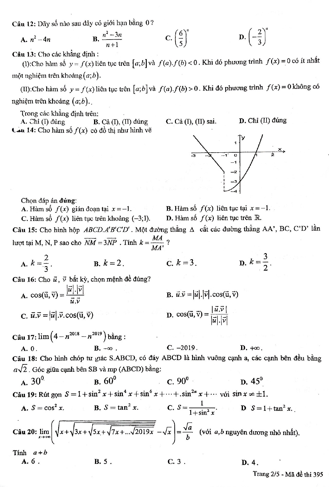 Đề thi giữa học kì 2 lớp 11 môn Toán năm 2018 - 2019 trường THPT Việt Nam - Ba Lan - Hà Nội