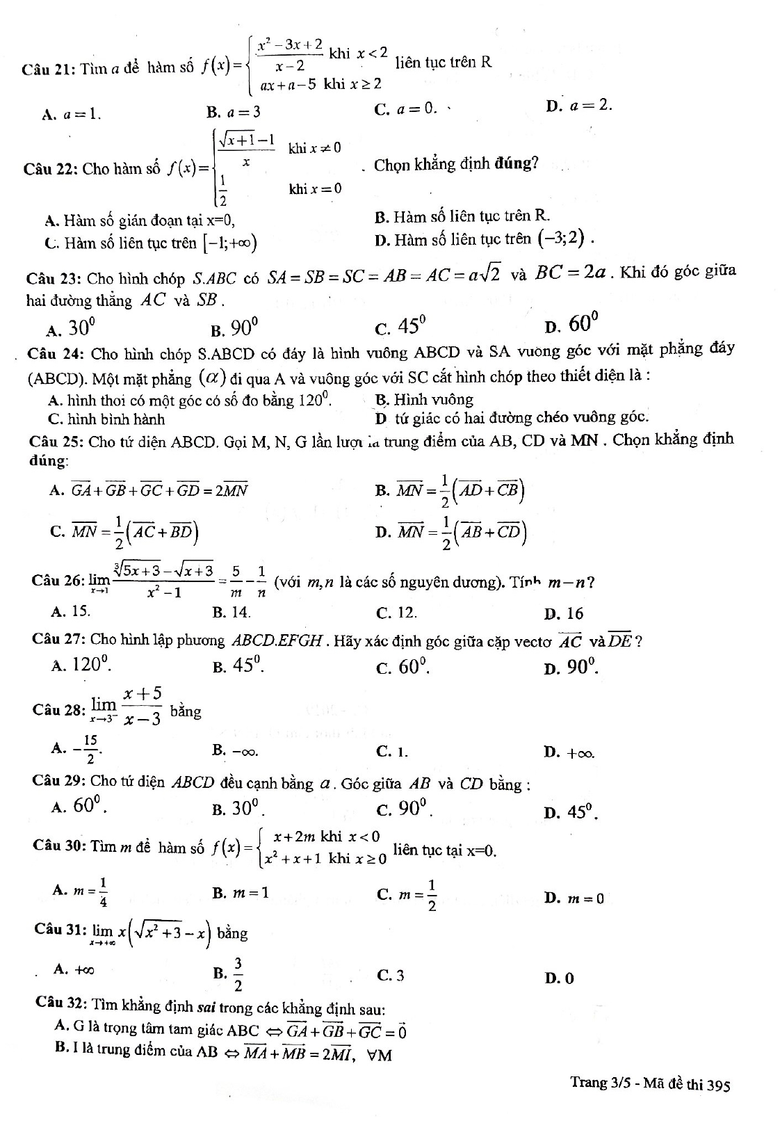 - Đề kiểm tra 1 tiết lớp 11 Đại số và Giải tích chương 3 - Đề số 2