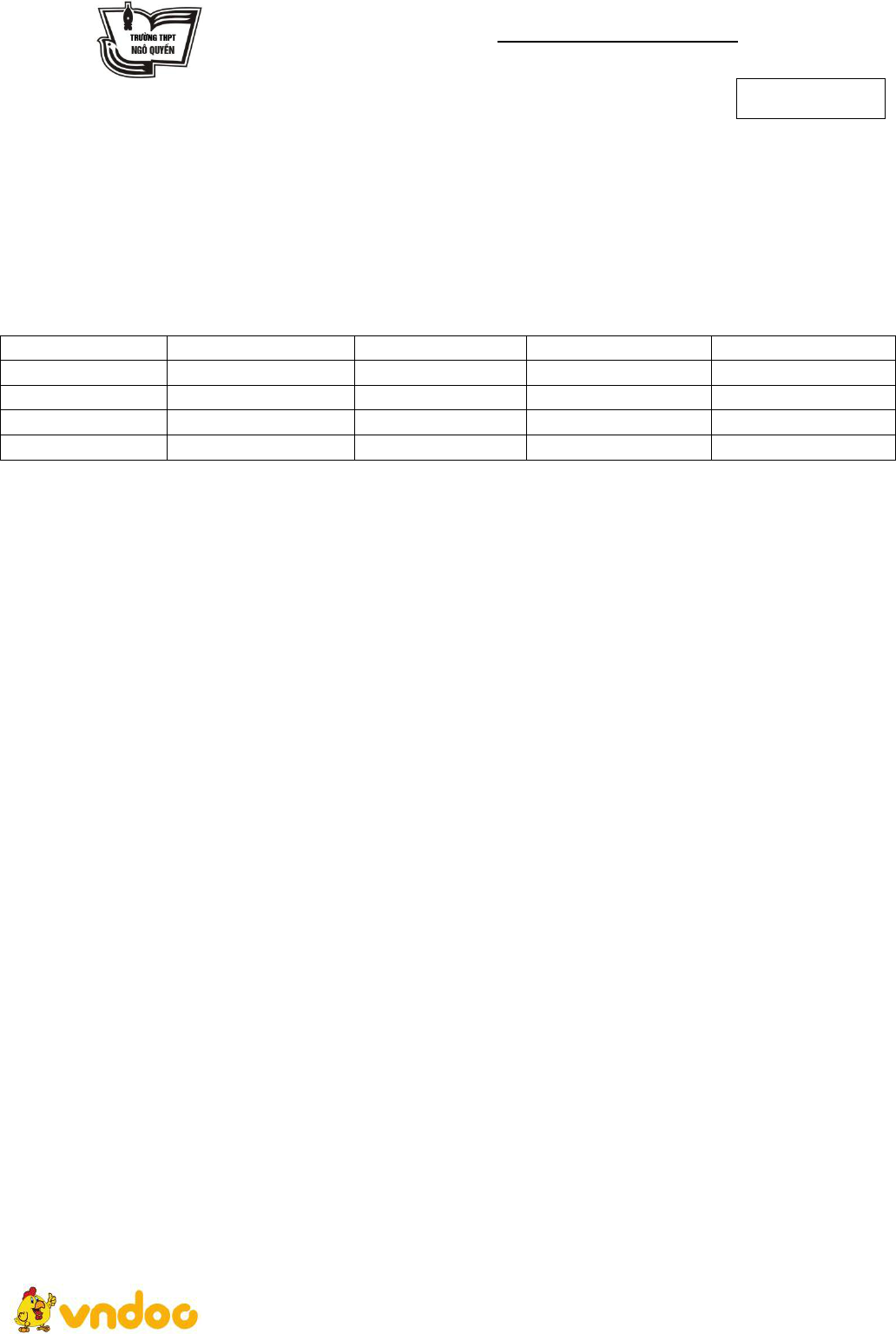 VnDoc xin giới thiệu tới bạn đọc Đề thi giữa học kì 2 lớp 12 môn Địa lý năm 2018 - 2019 trường THPT Ngô Quyền - Hải Phòng. Nội dung tài liệu gồm 32 câu hỏi trắc nghiệm, 1 câu tự luận, thời gian làm bài 45 phút, đề thi có đáp án. Mời các bạn tham khảo.