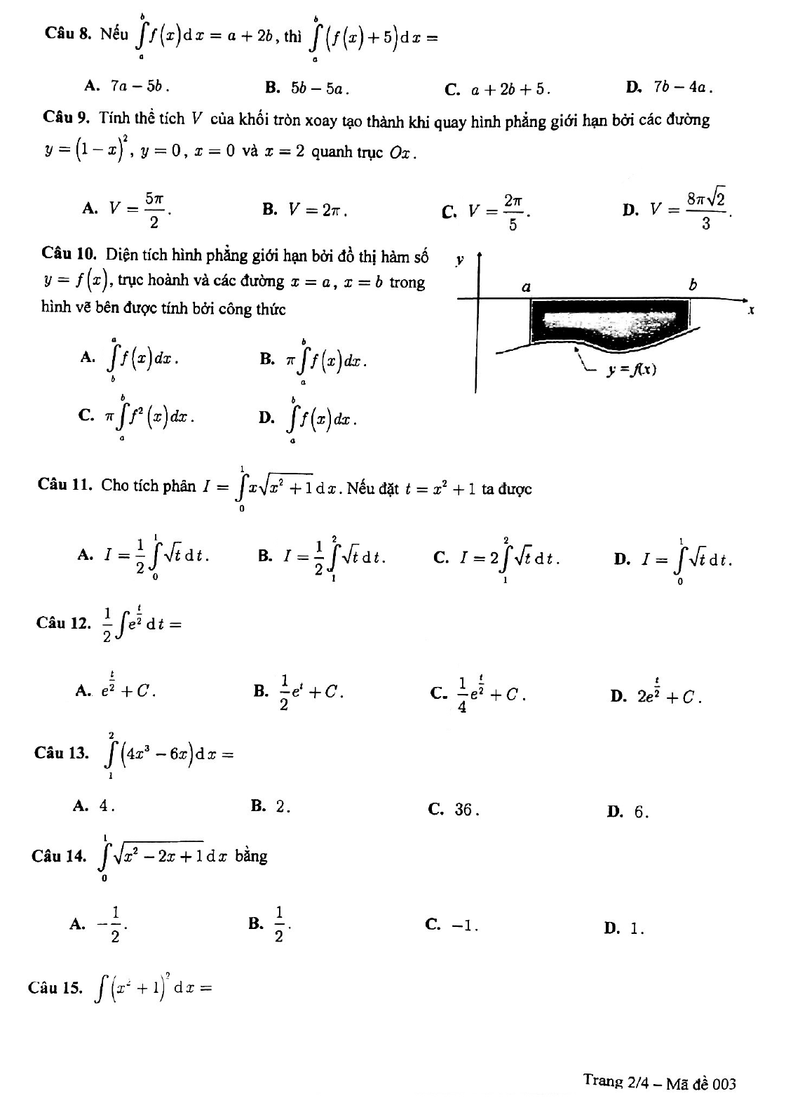 Đề thi giữa học kì 2 Toán 12