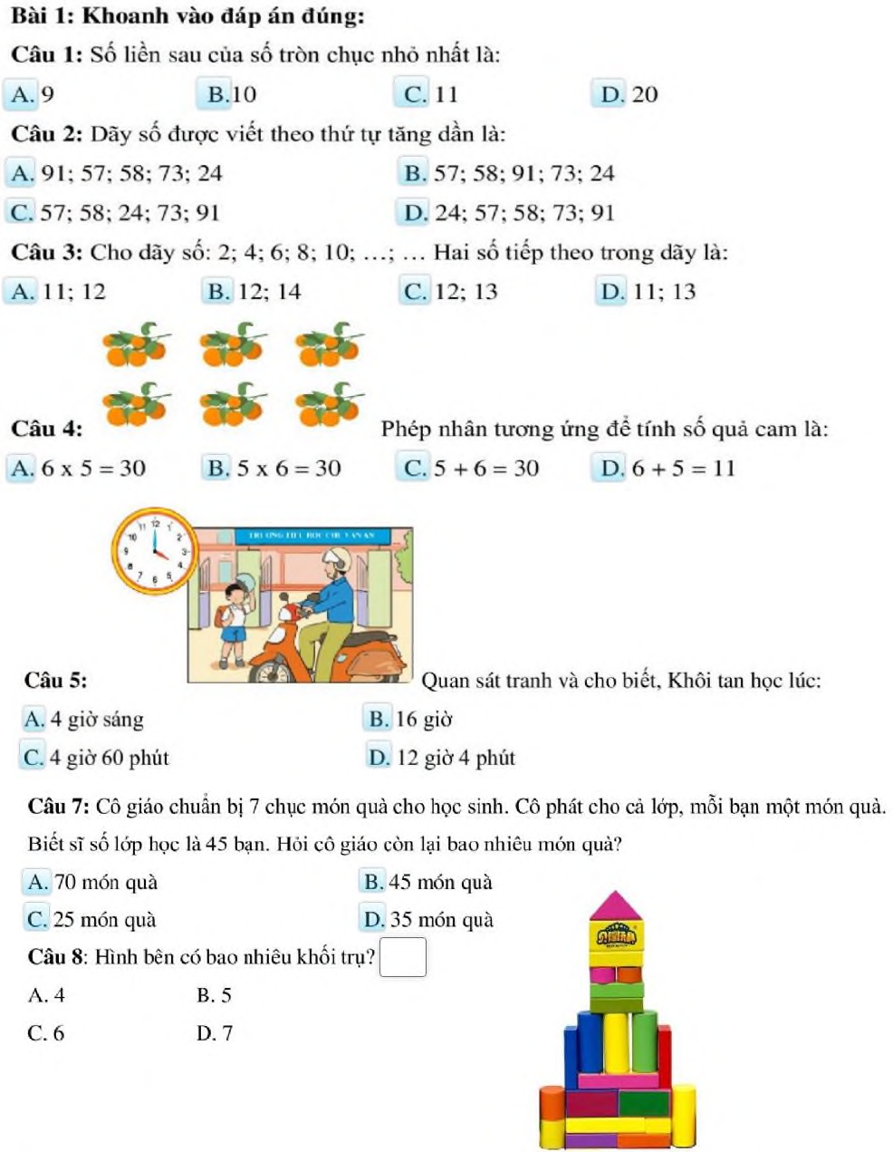 - Đề thi giữa học kì 2 lớp 2 môn Toán năm 2020 - 2021 - Đề 4