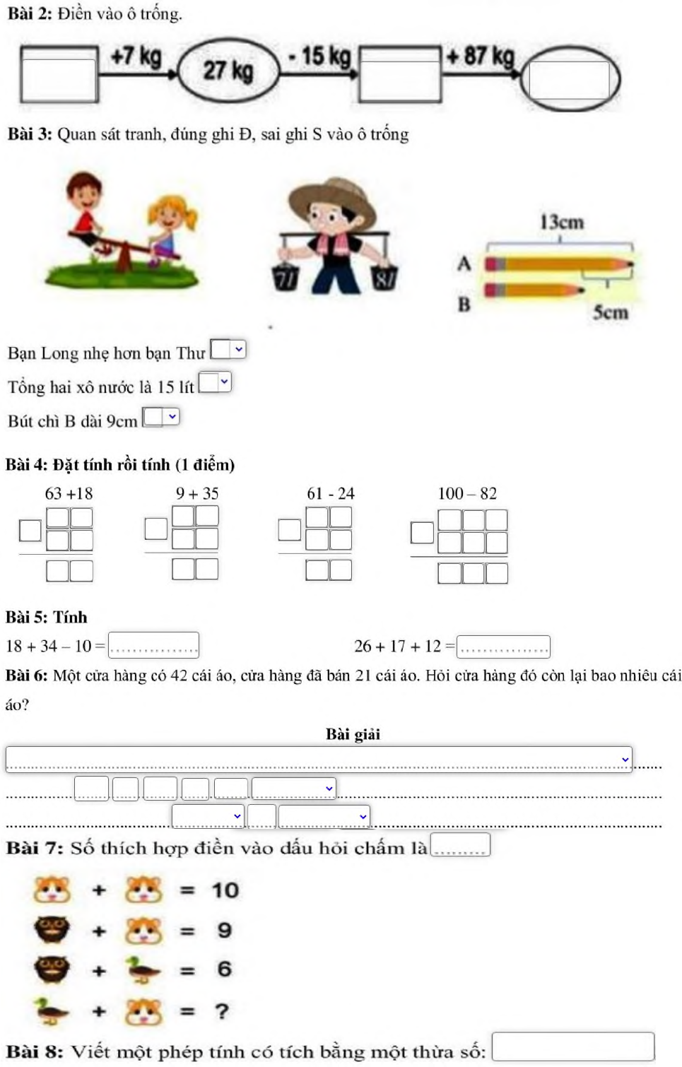 Đề thi giữa học kì 2 môn Toán lớp 2