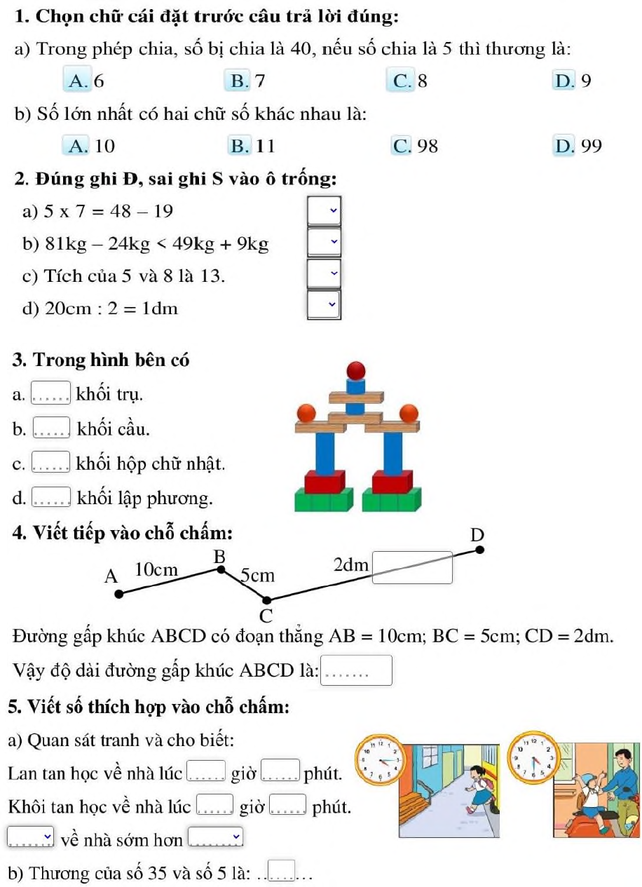 - Đề thi giữa học kì 2 lớp 2 môn Toán năm 2020 - 2021 - Đề 5