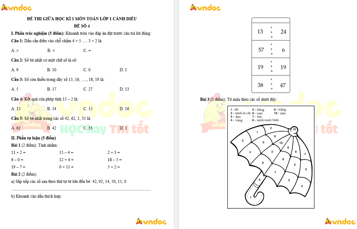 Hình ảnh minh họa cho Đề thi giữa học kì 2 Toán lớp 1 CD - Đề 4: