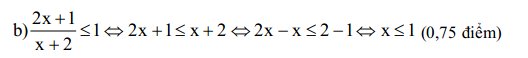 Vậy tập nghiệm của bất phương trình là (0,25 điểm)
