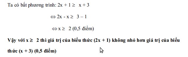 Giá trị của biểu thức (2x + 1) không nhỏ hơn giá trị của biểu thức (x + 3).