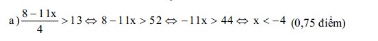 Vậy tập nghiệm của bất phương trình là: S1 = {x / x > 4} (0,5 điểm)
