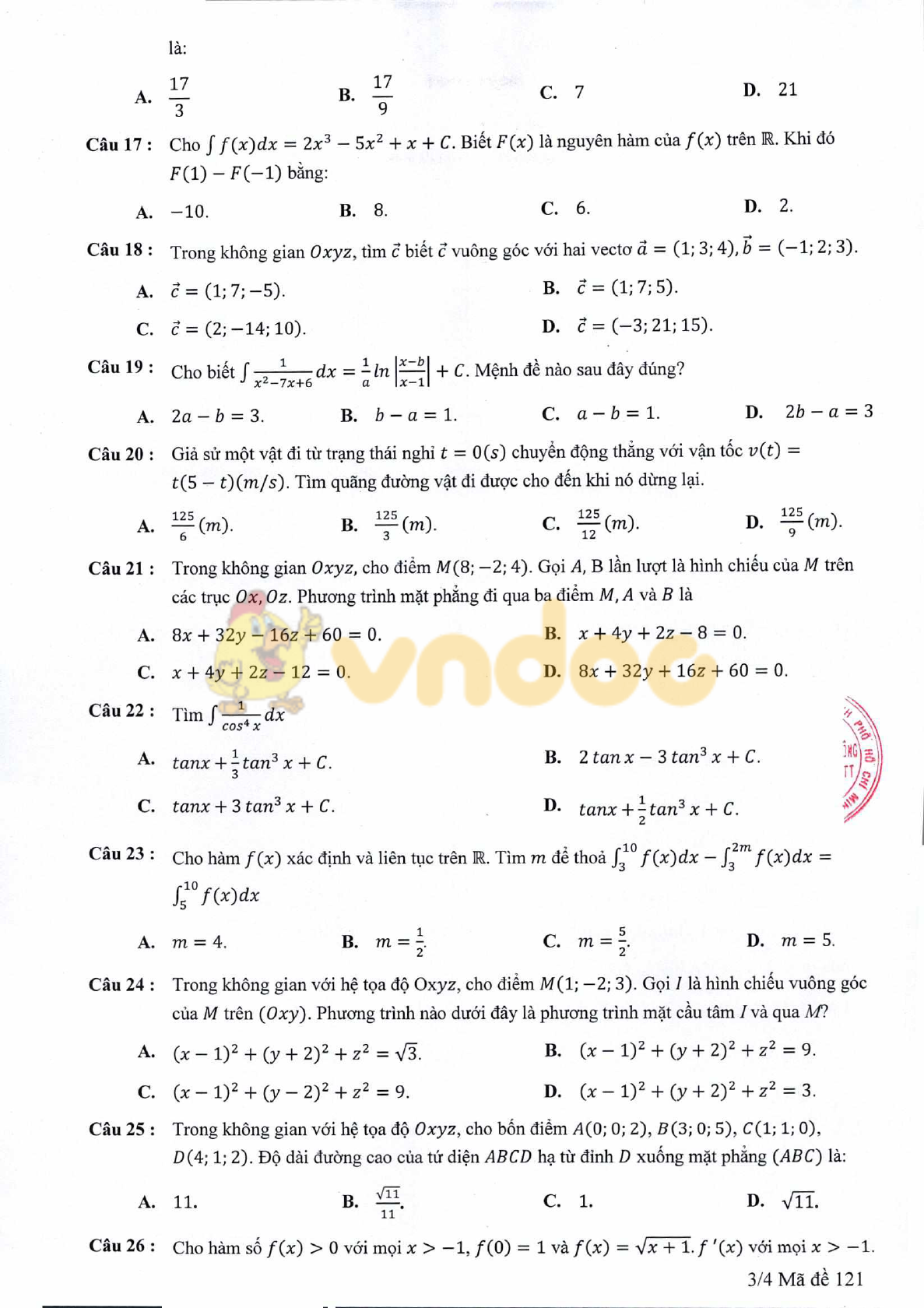 Trên đây VnDoc.com vừa giới thiệu tới các bạn Đề thi giữa kì 2 Toán 12 năm học 2020 - 2021. Mời các bạn cùng tham khảo thêm các môn Ngữ văn 12, Tiếng Anh 12, đề thi học kì 1 lớp 12, đề thi học kì 2 lớp 12... được cập nhật liên tục trên VnDoc.com.