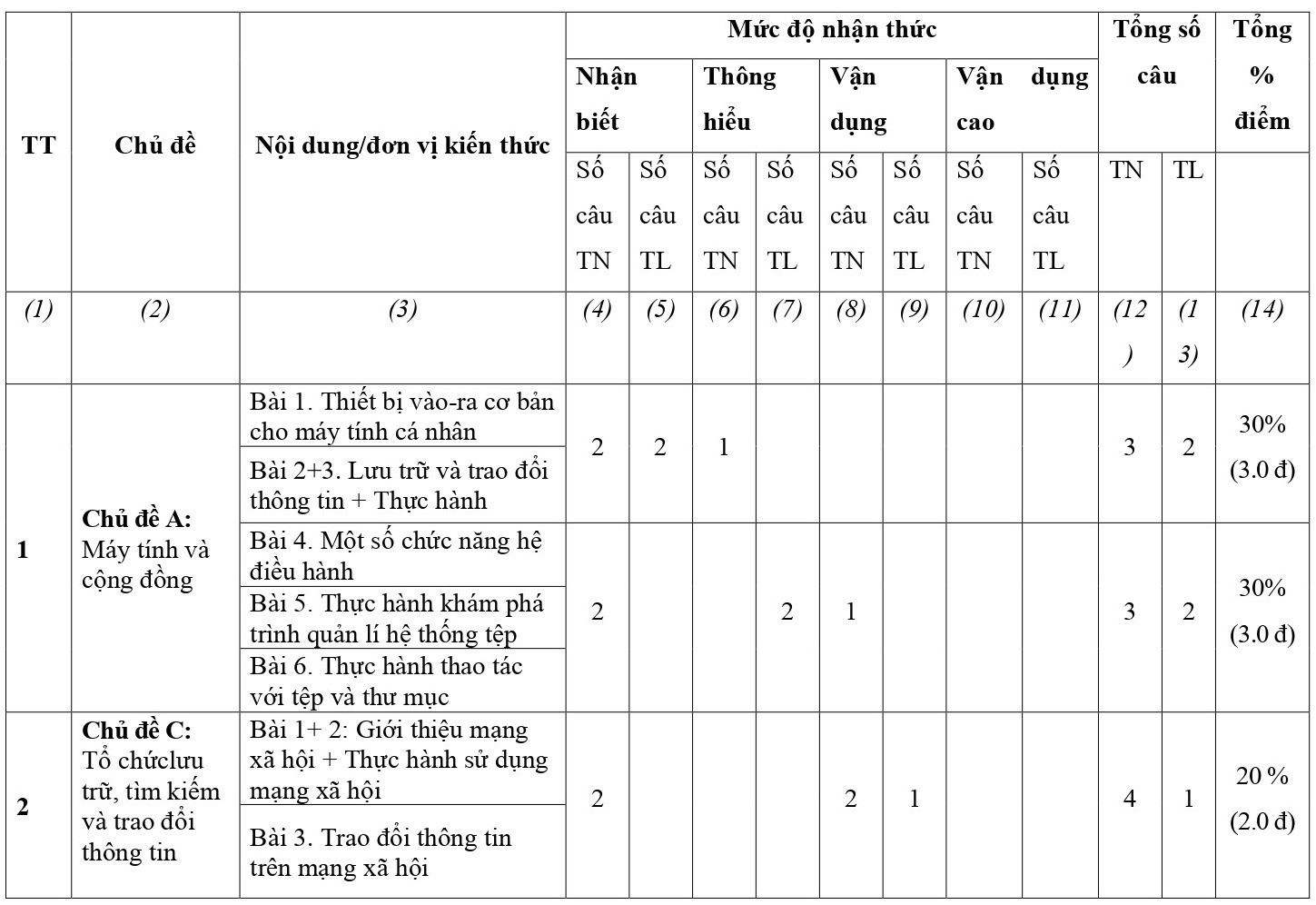 Ma trận đề thi giữa học kì 1 Tin học 7