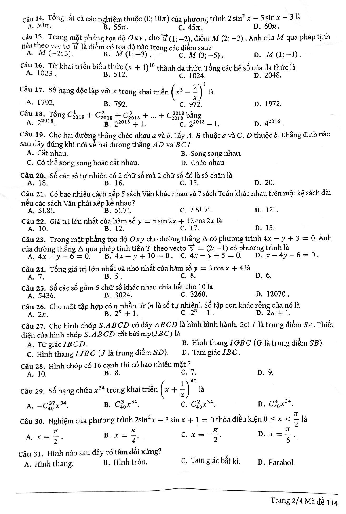 Đề thi khảo sát Toán 11 năm 2018 - 2019 trường THPT Nguyễn Đăng Đạo - Bắc Ninh lần 1