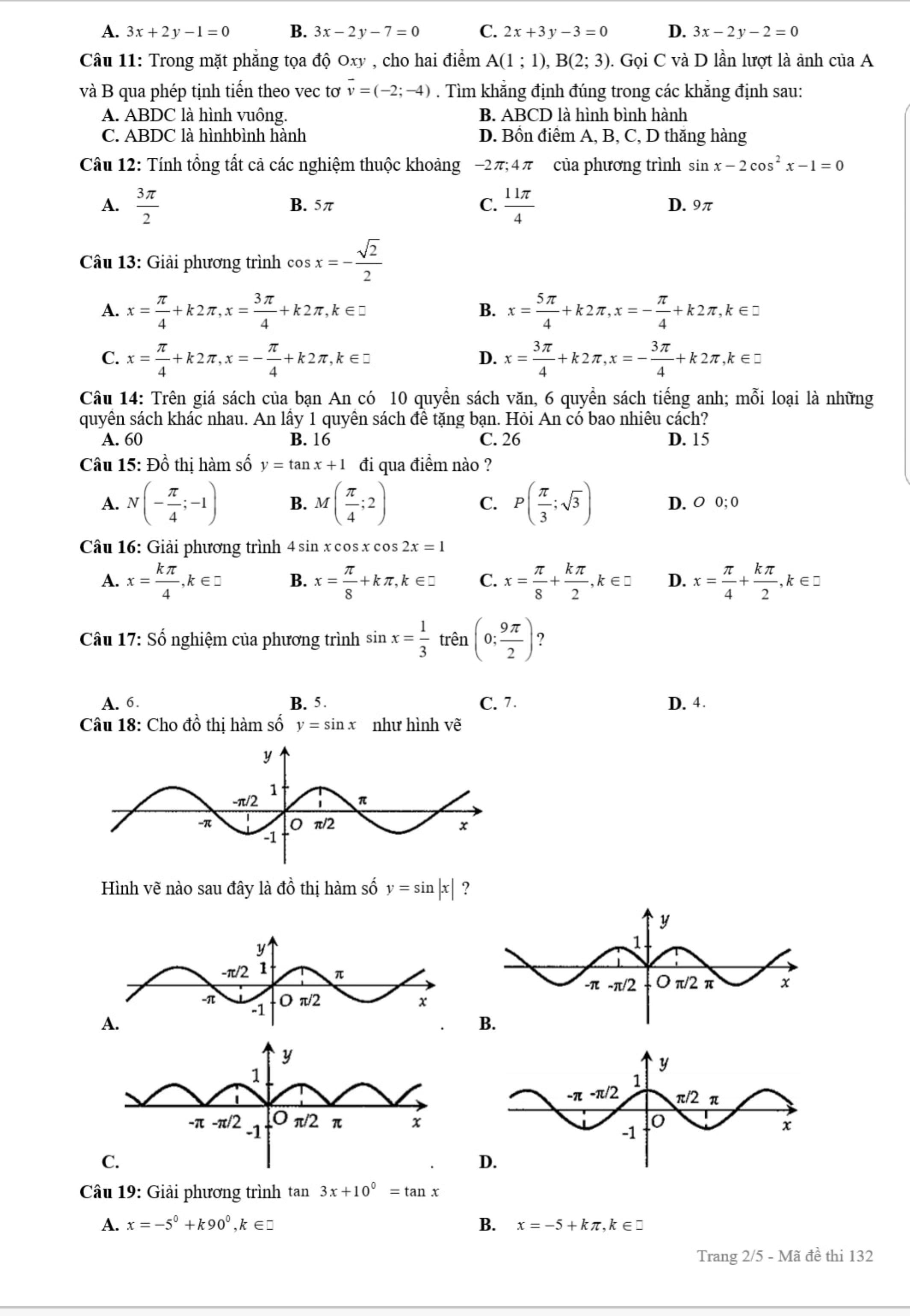 Đề thi giữa kì 1 Toán 11 năm 2018 - 2019