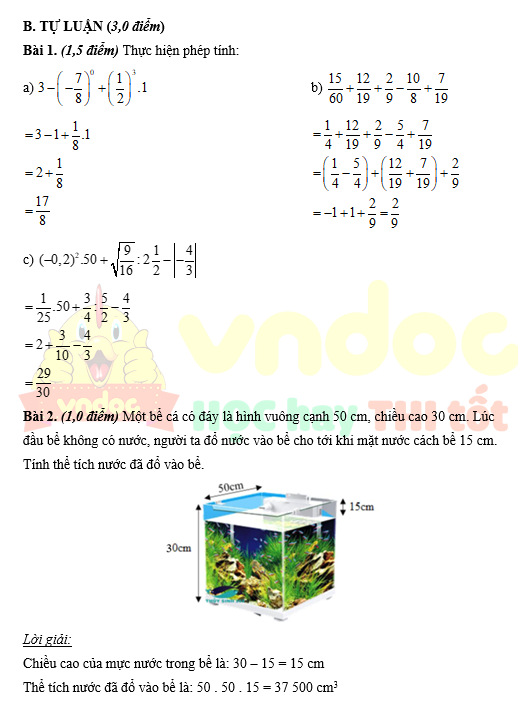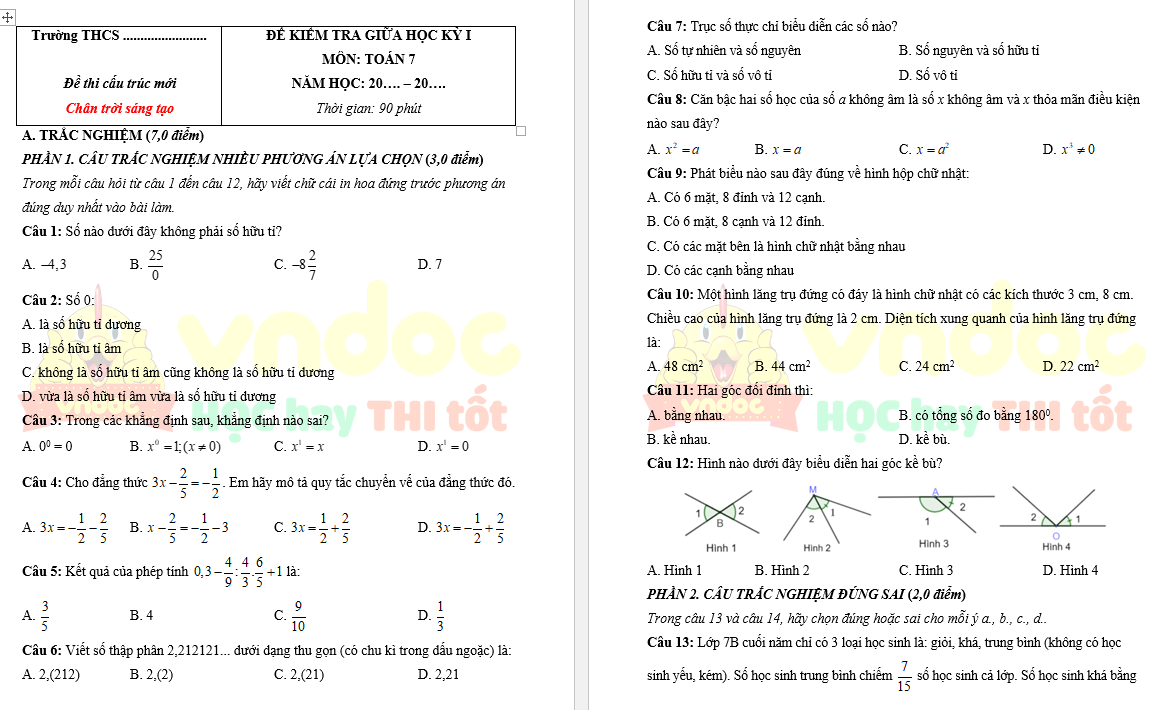 Đề thi giữa kì 1 môn Toán lớp 7 theo CV 7991