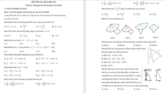 Đề thi giữa kì 1 Toán 8 Cánh diều năm 2025