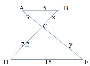 Câu 14. (1 điểm) Cho hình vẽ. Tính độ dài x , y biết AB//DE |