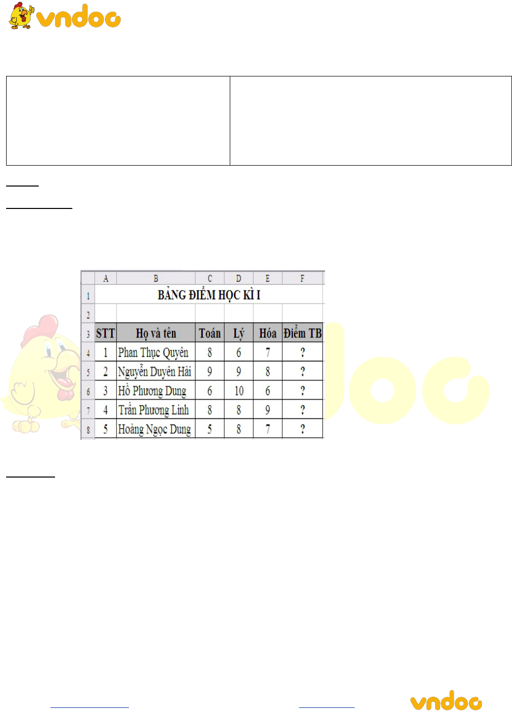 Đề thi giữa học kì 2 môn Tin học 7 có đáp án