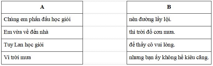 Câu 8: Nối vế câu ở cột A với vế câu ở cột B để tạo thành câu ghép (M2-1đ)