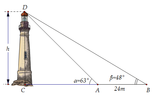 \(CD = h\) là chiều cao của tháp trong đó