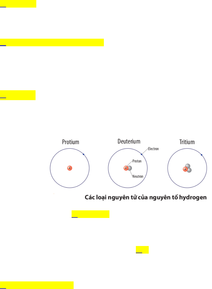 Câu 4: Hình ảnh mô hình nguyên tử các đồng vị của nguyên tử Hydrogen được cho dưới đây.